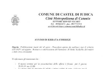 AVVISO DI ERRATA CORRIGE NUOVO TERMINE PER LA PRESENTAZIONE DELLE OFFERTE PER IL GIORNO 20.3.2019