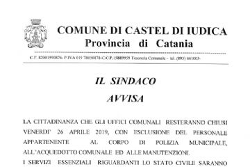 AVVISO PER CHIUSURA UFFICI COMUNALI PER IL GIORNO 26 APRILE 2019