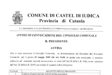 CONVOCAZIONE DEL CONSIGLIO COMUNALE PER IL 23 MAGGIO 2019 ORE 16
