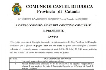 CONVOCAZIONE DEL CONSIGLIO COMUNALE PER IL 13 GIUGNO 2019 ORE 17
