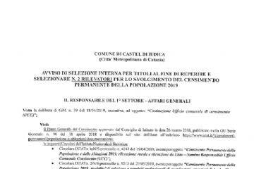 AVVISO DI SELEZIONE INTERNA PER TITOLI AL FINE DI REPERIRE E SELEZIONARE N. 2 RILEVATORI
