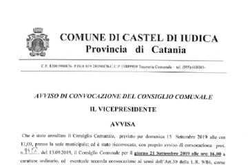 AVVISO DI CONVOCAZIONE DEL CONSIGLIO COMUNALE PER IL GIORNO 21 SETTEMBRE 2019