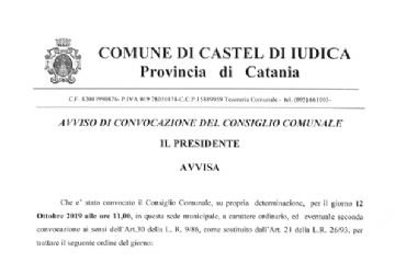 AVVISO DI CONVOCAZIONE DEL CONSIGLIO COMUNALE PER IL GIORNO 12 OTTOBRE 2019 ORE 11:00