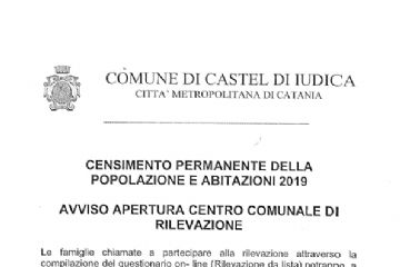 CENSIMENTO PERMANENTE DELLA POPOLAZIONE E ABITAZIONE 2019- AVVISO APERTURA CENTRO COMUNALE DI RILEVA