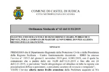 CHIUSURA SCUOLE DI OGNI ORDINE E GRADO, PUBBLICHE E PRIVATE, PER LA GIORNATA DI MARTEDÌ 12 NOVEMBRE