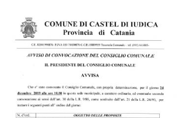 AVVISO DI CONVOCAZIONE CONSIGLIO COMUNALE PER IL GIORNO 24 DICEMBRE ORE 10:00
