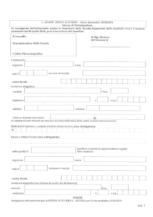 DISPOSIZIONI ATTUATIVE PER L'ANNO 2018/19 E BANDO PER L'ASSEGNAZIONE DELLE BORSE DI STUDIO- ISTANZA DI PARTECIPAZIONE