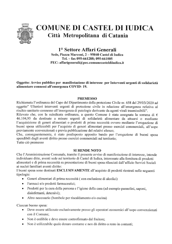 - Avviso pubblico per manifestazione di interesse per interventi urgenti di solidarietà alimentare[.pdf 127,53 Kb - 02/04/2020]