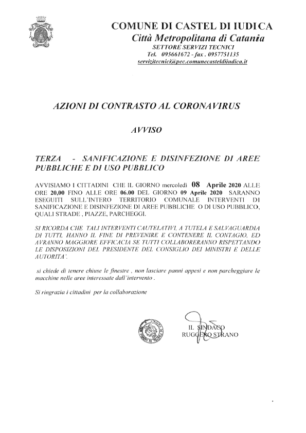 - Azione di contrasto al coronavirus- terza sanificazione per giorno 8 aprile dalle ore 20:00[.pdf 58,62 Kb - 06/04/2020]