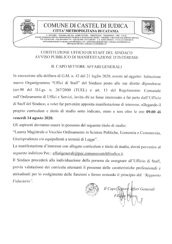 - COSTITUZIONE UFFICIO DI STAFF DEL SINDACO AVVISO PUBBLICO DI MANIFESTAZIONE D'INTERESSE[.pdf 91,61 Kb - 12/08/2020]