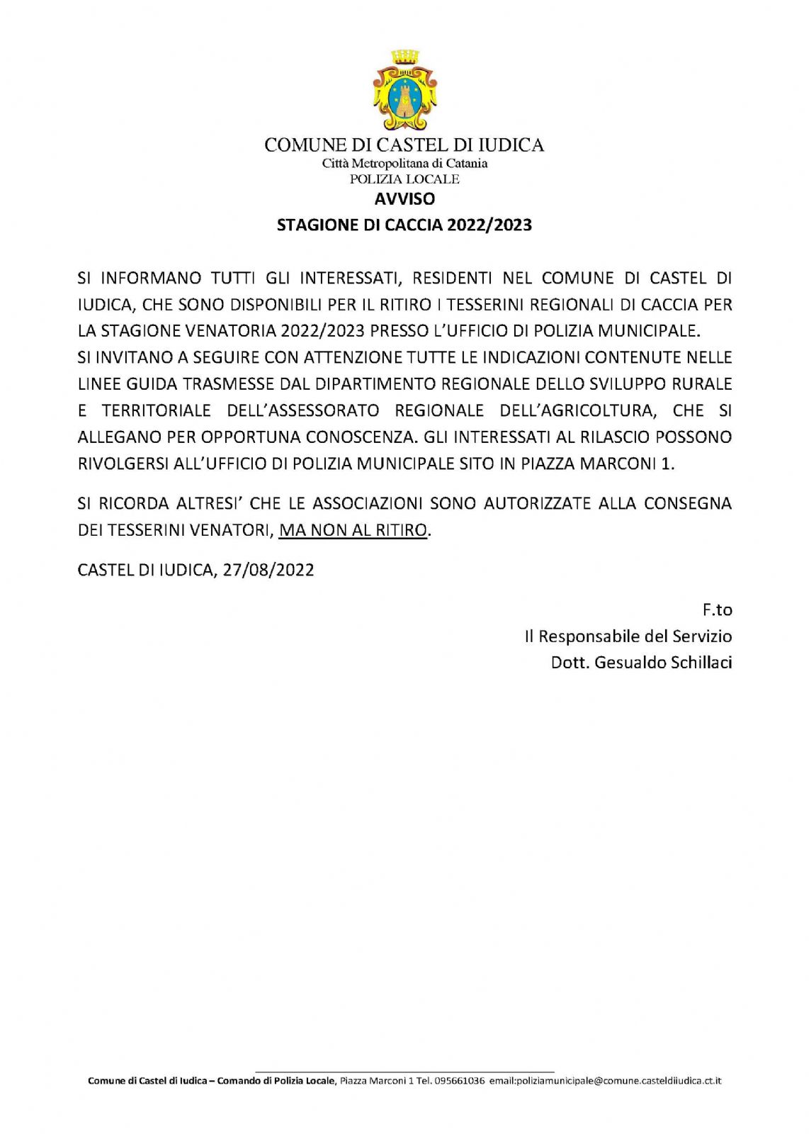 - CIRCOLARE CONSEGNA TESSERINI VENATORI 2022[.pdf 2,7 Mb - 31/08/2022]