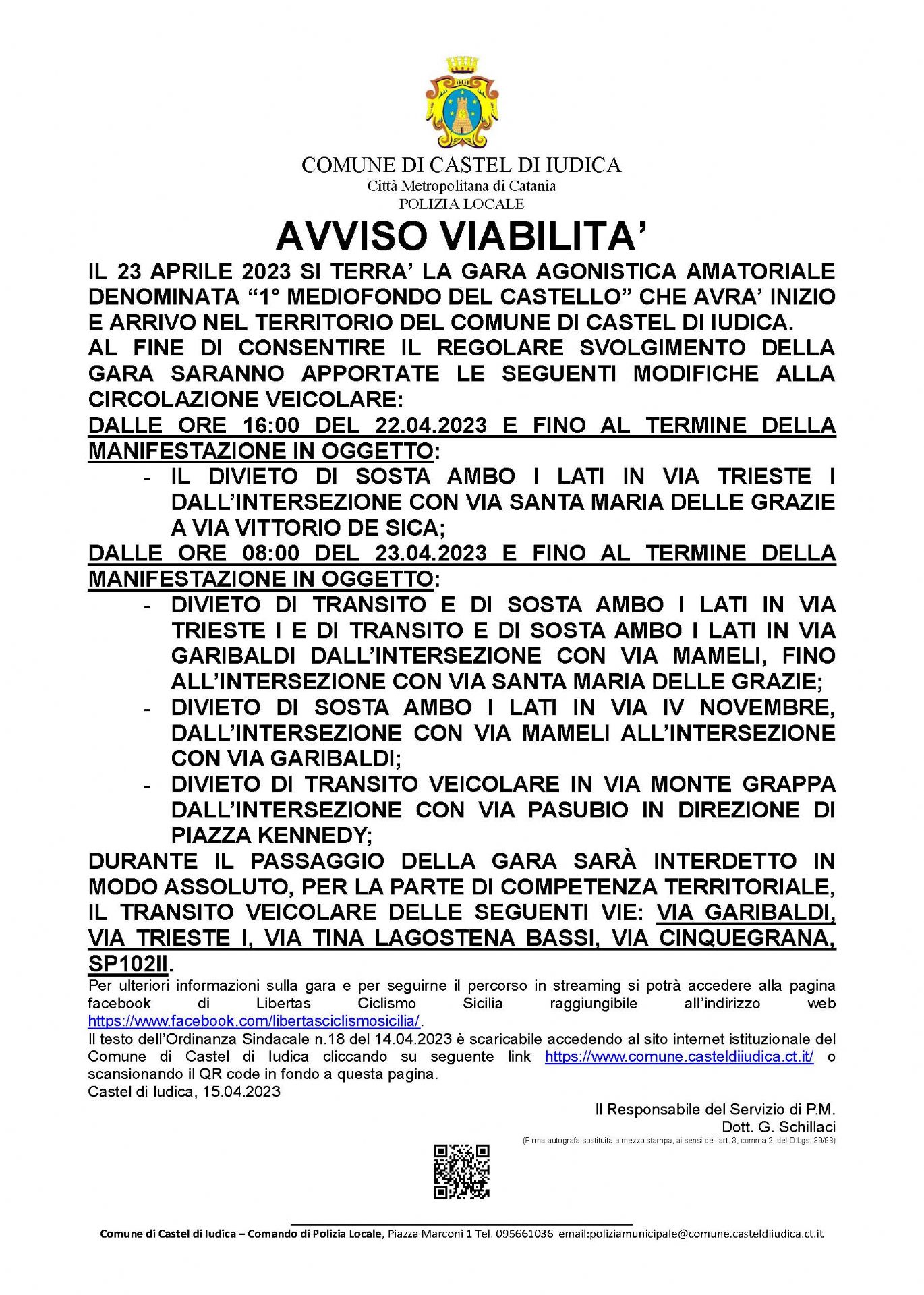 AVVISO VIABILITA' - 1° MEDIOFONDO DEL CASTELLO